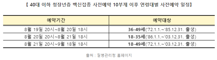 ▶ 40대 이하 백신 접종 사전예약 신청 바로가기!