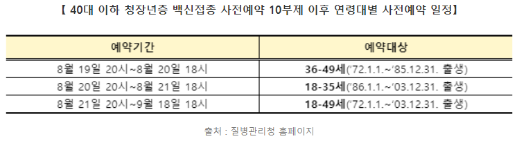 ▶ 40대 이하 백신 접종 사전예약 신청 바로가기!