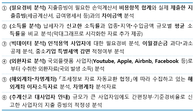 ○ 신고 후에는 신고도움자료 반영 여부를 정밀 분석하여 불성실 신고자에 대해 엄정한 세무검증을 실시할 계획입니다.
