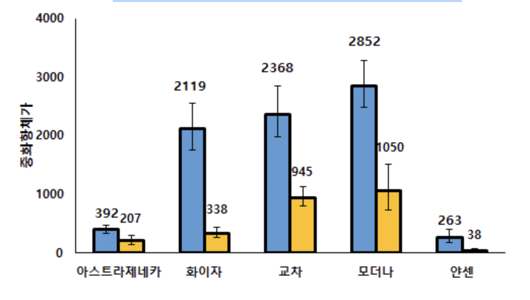 ○ 국내 코로나19 백신접종군을 대상으로 백신별 항체 형성 및 지속능을 분석하였다.