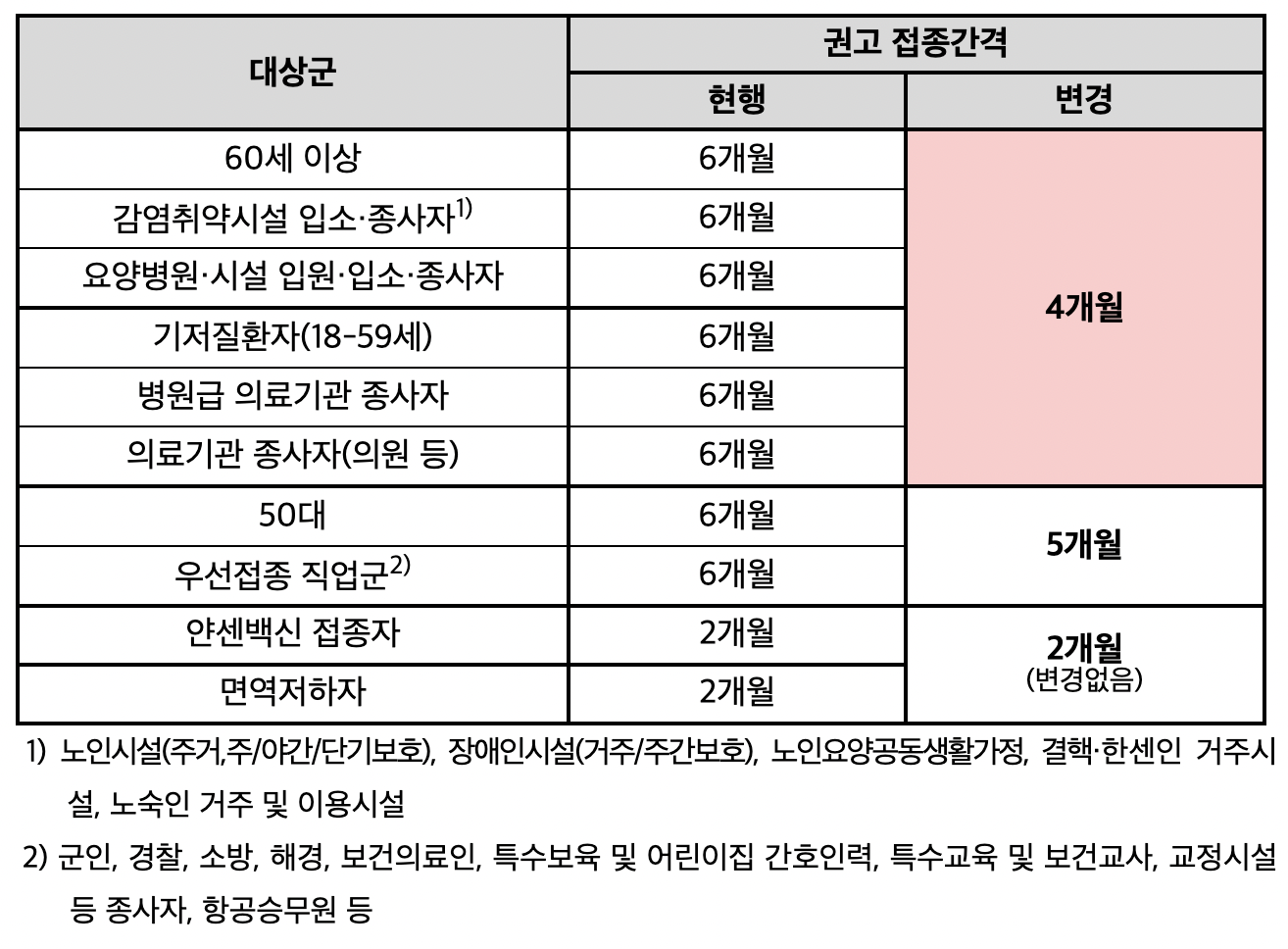 본 저작물은 ‘질병관리청’에서 ‘21년’ 작성하여 공공누리 제1유형으로 개방한 ‘60세 이상 고령층, 감염취약시설 등 추가접종 간격 4개월로 단축(작성자:코로나19 예방접종대응추진단 예방접종기획팀)’을 이용하였으며, 해당 저작물은 ‘질병관리청 홈페이지(www.cdc.go.kr/cdc/)’에서 무료로 다운받으실 수 있습니다.