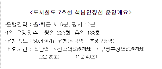 □ 서울 도시철도 7호선 석남연장 열차 운영계획