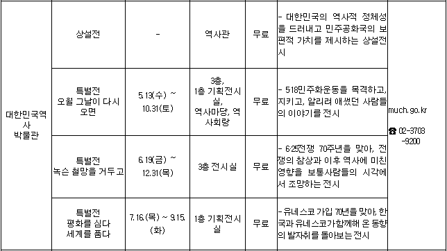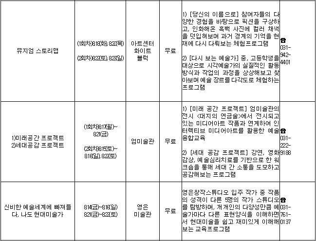 * 박물관, 미술관 관람 및 문화체험 사항은 사전에 꼭 연락해 보시고 참여하세요~~^^