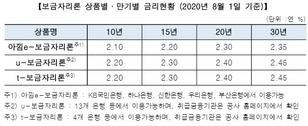 8월 보금자리론 대출 금리 최저 2.10%