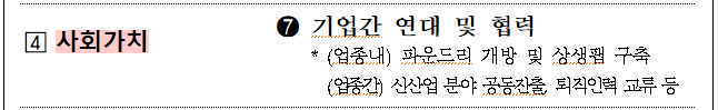 (업종간) 신산업 분야 공동진출, 퇴직 인력 교류, 분쟁 중지, 해외 동반 진출 등