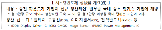 * (업종내) 파운드리 개방 및 상생팹 구축, 협력사 납품대금 조기 지급 등