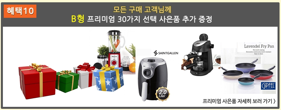 1) 초호화 혜택 : 초호화 사은품은 가족 또는 지인 2대 이상 구매 시 선택 가능합니다. 1대 구입할 경우 추가급액을 납부 시 선택 가능합니다.