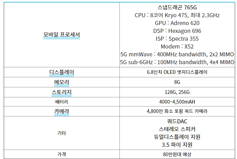 ** LG 벨벳(VELVET) 사양 및 스펙
