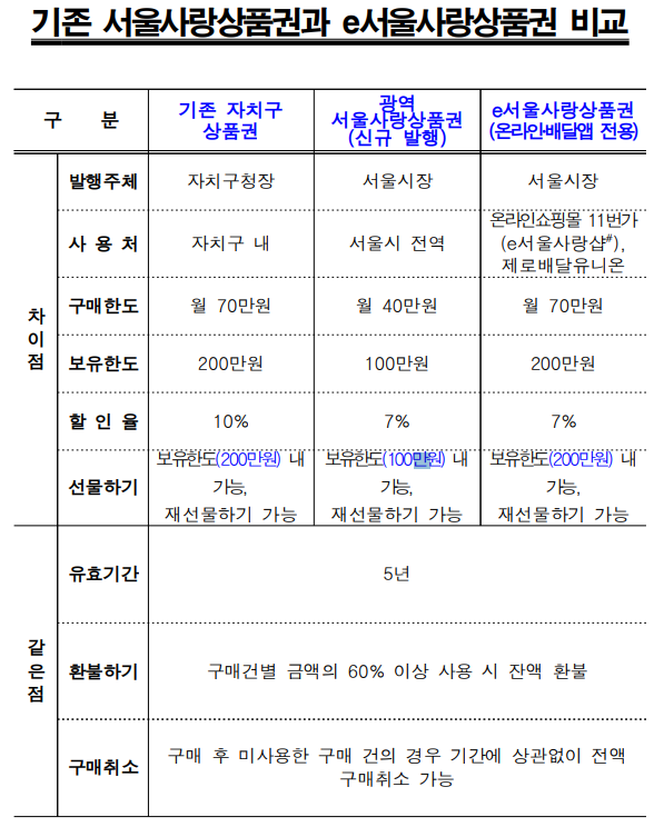 e서울사랑상품권 주요 내용